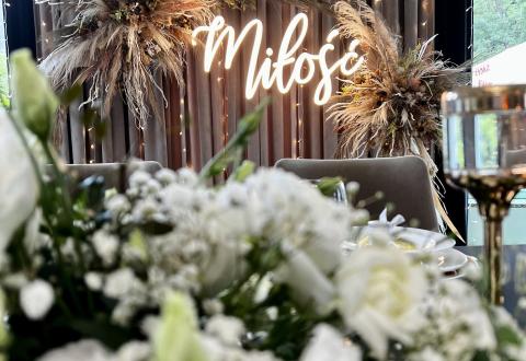 Piękny i efektowny napis ledowy, który wspaniale wygląda na ściance za Parą Młodą.